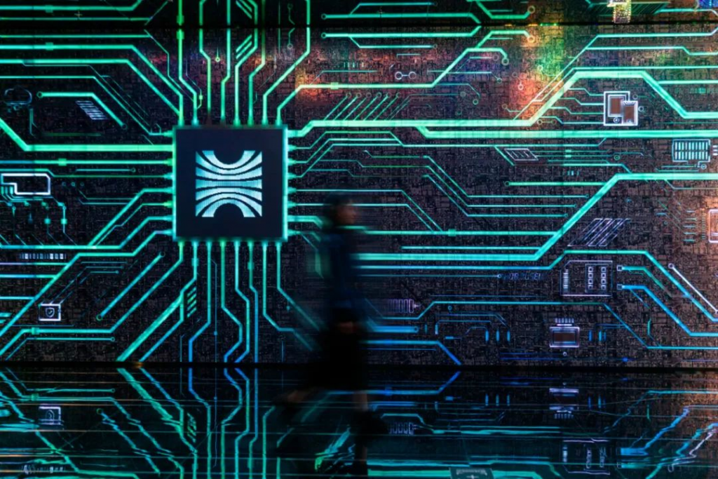 一進入博物館的印象大廳,由線路板與電子芯片構成的裝置光影變幻、引人注目,賽博朋克既視感撲面而來。