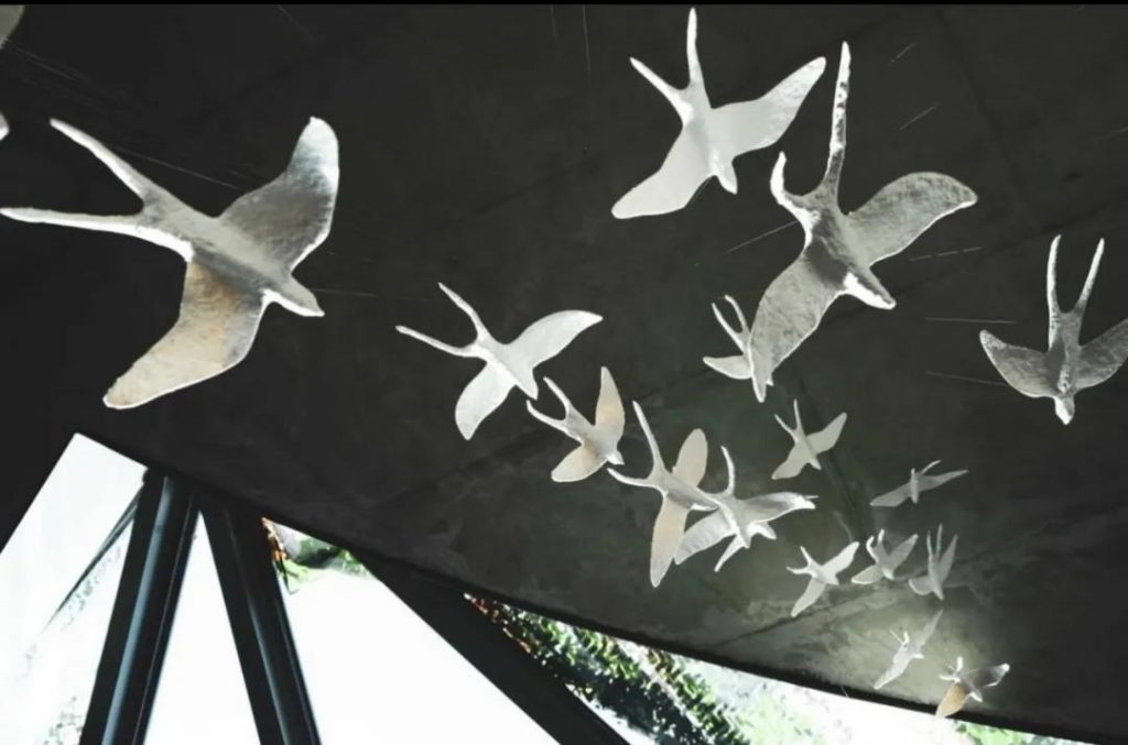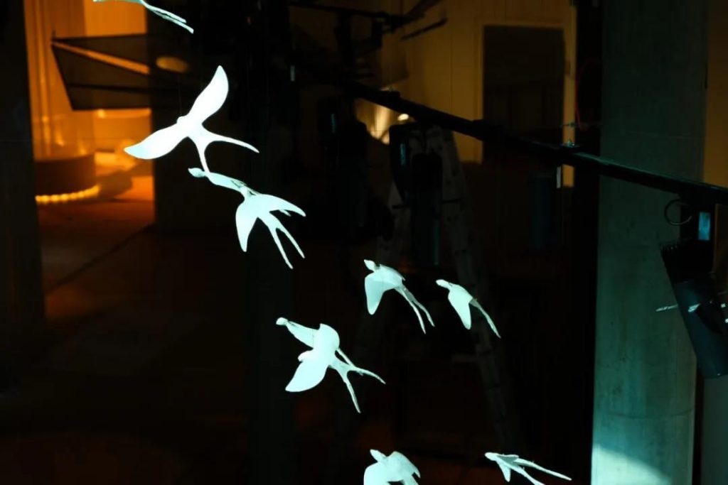 館內(nèi)裝置由丹麥剪紙藝術(shù)家Veronica Hodges純手工設(shè)計制作。以拇指姑娘的故事為靈感,以燕子為契機,用翱翔的姿態(tài)表達了拇指姑娘對自由的向往。