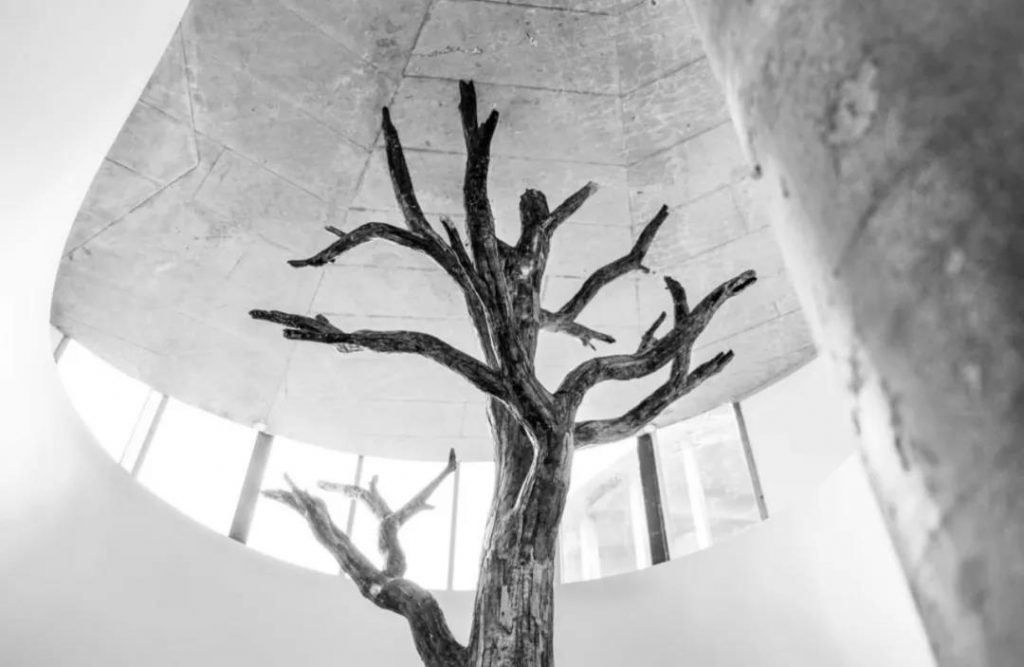 整個結(jié)構(gòu)體完工后,將精心挑選的長相扭曲異想天開的38顆松樹錯落有致的“放置”在平面上。營造童話森林的怪異氛圍。